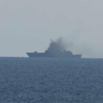 Smoke was observed on the Russian ship “Admiral Gorshkov” in the Mediterranean Sea. The relevant footage was published by OSINT researcher Russian Forces Spotter.