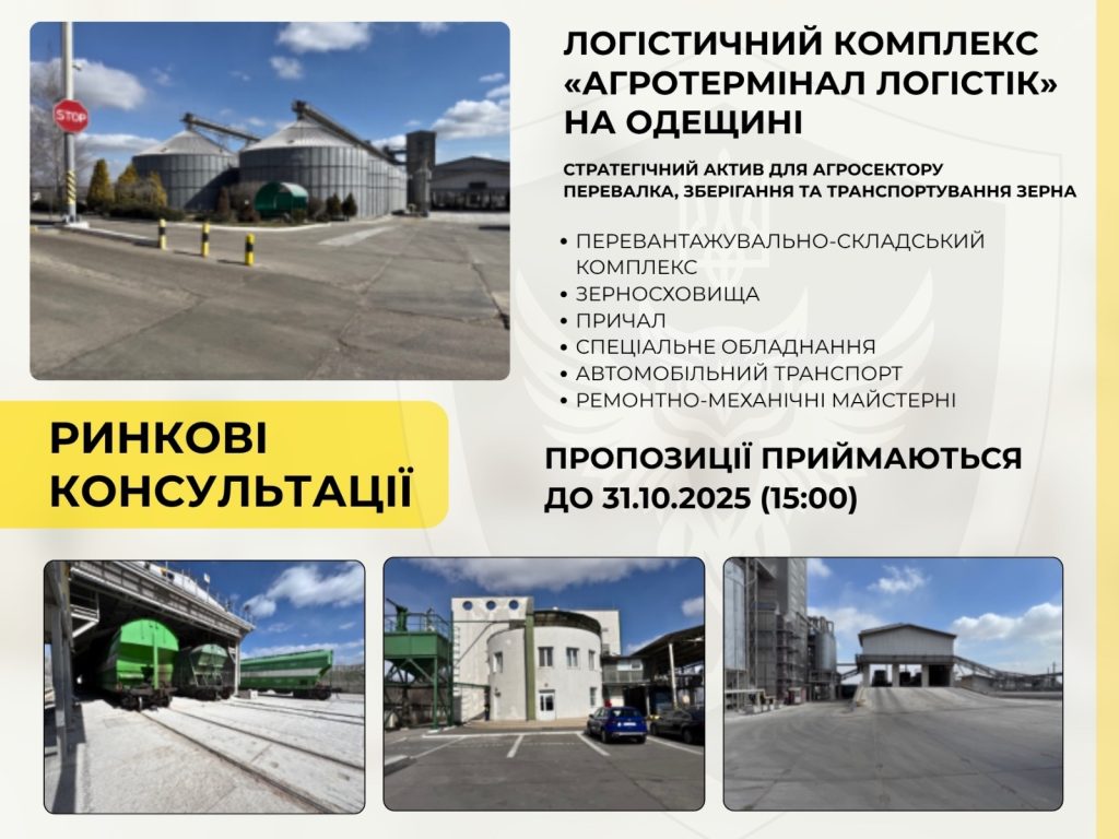 ARMA has launched market consultations on the selection of a manager for a strategic asset – the maritime logistics complex of Agroterminal Logistic LLC in the Odesa region.