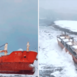Chinese bulk carrier carrying dangerous cargo runs aground in Russia during snowfall