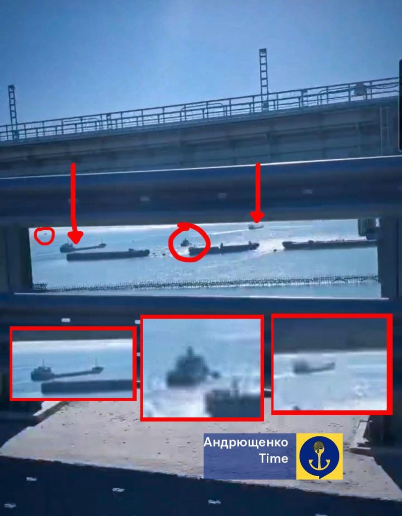 This time, it was possible to film the so-called “pirate convoy” in the Black Sea. Ships with grain and coal moved under the Kerch Bridge, accompanied by several Russian military boats. The latter played the role of protection against possible attacks or flooding.