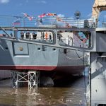 The Admiral Amelko frigate of Project 22350, also known as the “Gorshkov- class”, was launched at the Severnaya Shipyard in St. Petersburg.