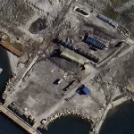 August Google Earth images (August 14, 2025) recorded three rows of fuel tanks near the settlement of Pivnichny on the Novaya Zemlya archipelago, covered with blue metal mesh — the same “protective cages” that were previously used to cover aviation fuel tanks at Russian military airfields.