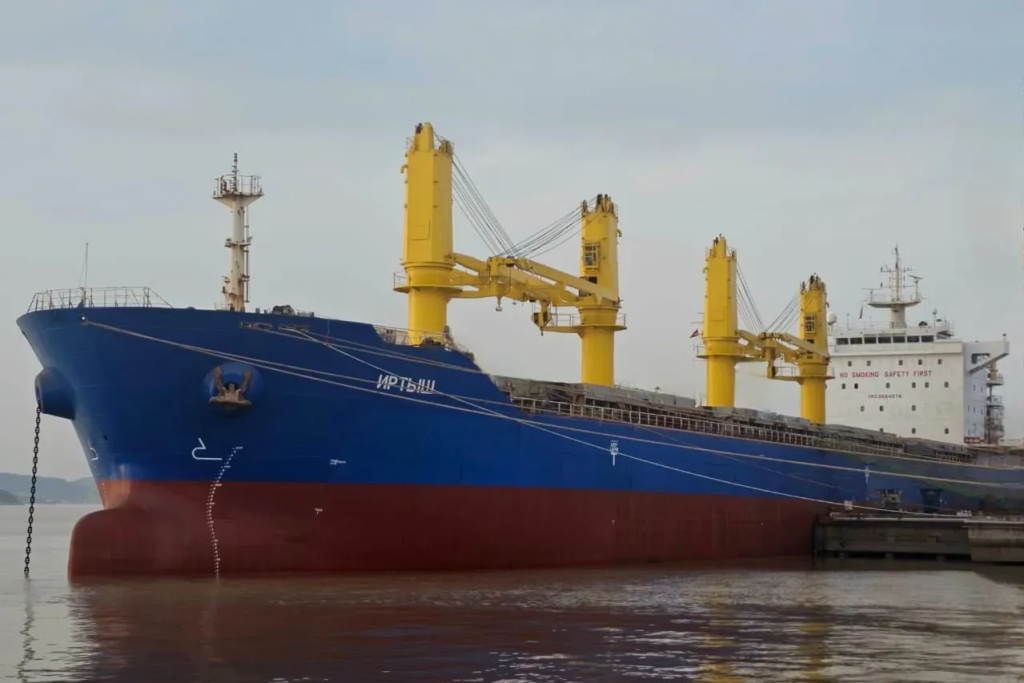 According to her, IRTYSH (IMO: 9664976) made an illegal entry into occupied Sevastopol and loaded 32,850 tons of stolen wheat on January 30.