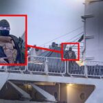 When one of the DR journalists approached the vessel in a small boat, he saw a man wearing a mask and a bulletproof vest with a weapon in his hands.