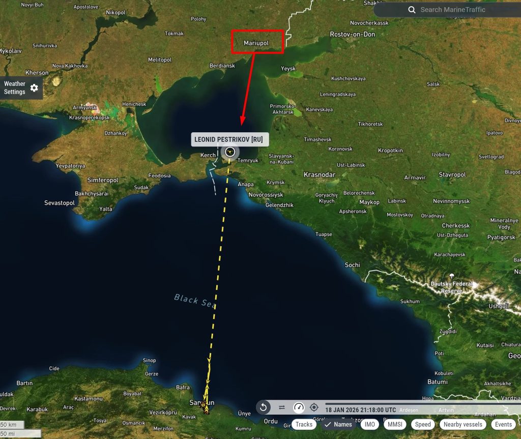 Thus, the tanker Leonid Pestrykov (IMO 9922122) loaded 7,526.16 tons of wheat in Berdyansk on January 11–14, 2026 and is heading to Samsun. The exporter is the Terramax company.