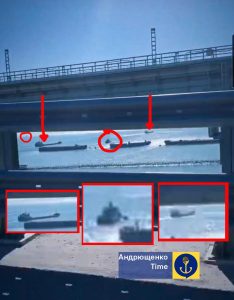 Russian ships accompany the ships-thieves under the Kerch Bridge, protecting them from possible flooding.