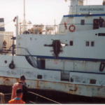 A missile with a blank warhead passed through the ship’s cockpit. The size of the hole punched by the rocket was 2 meters at the entrance and 4 meters at the exit. It is known that there were 17 sailors, 5 passengers and 92 tons of cargo on the ship. People miraculously did not die, only one crew member was injured.
