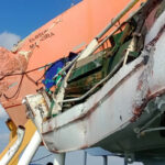 The accident occurred near the Akhirpaki pier when the bulk carrier New Legend collided with the stern of the Elbsun container ship while maneuvering.